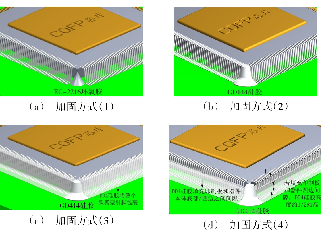 摘要:CQFP封装器件大量应用在航天各型号电子单机中,其装焊质量影响整个电子单机可靠性。本文对CQFP封装器件不同加固工艺对焊点可靠性的影响进行试验分析。结果显示,使用EC-2216环氧胶加固CQFP器件四角位置满足宇航类电子产品高可靠装焊要求,该点胶方式最优;仅用GD414硅胶加固CQFP器件四角的加固方式抗振性能较差,必须使用硅胶填充印制板和器件陶瓷本体底部或四边之间间隙才能提升其抗振性能;但硅橡胶D04完全包裹并填充CQFP鸥翼型引脚时,温循试验过程中引线应力无处释放,焊点出现微孔聚集断裂,抗热疲劳性能大幅下降,因此此类器件使用硅胶加固时,应留出引线应力释放部位。本研究将为航天电子产品CQFP封装器件加固工艺提供参考。
