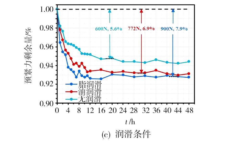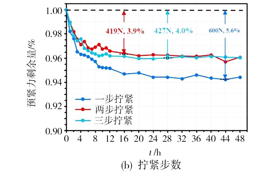 摘要:针对螺栓连接的预紧力一致性差、短期松弛等问题,以复合材料螺栓连接结构为研究对象,以普通螺栓预紧力形成机理为基础,结合高锁螺栓结构特点分析预紧力产生原理,推导了高锁螺栓扭矩-预紧力关联关系,通过螺栓拧紧试验确定了高锁螺栓扭矩法工艺中锁紧力矩、拧断力矩等参数,并且拟合了高锁螺栓扭矩-预紧力关系曲线;通过设计单因素试验分析了拧紧速度、润滑条件、拧紧步数等工况对螺栓连接预紧力一致性的影响。试验表明拧紧速度和润滑条件对螺栓预紧力一致性影响较大,高拧紧速度和施加润滑可以获得较大的预紧力,但是预紧力一致性会变差;针对螺栓拧紧后产生预紧力短期衰减问题,设计螺栓预紧力48 h自然松弛试验探究了拧紧速度、润滑条件、拧紧步数等工况下复合材料叠层结构螺栓预紧力自然松弛规律,结果表明润滑条件对复合材料叠层结构螺栓预紧力自然松弛影响最显著。